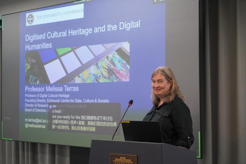 英国皇家工程院院士、英国爱丁堡大学教授 Melissa Terras 爵士出席研讨会并做题为“Digitised Cultural Heritage and the Digital Humanities”的主旨发言。