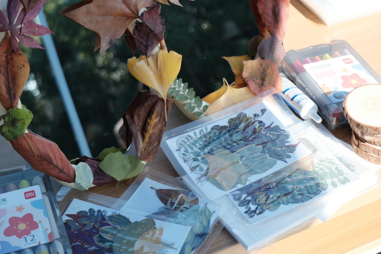 在树叶自画像展台,我们将自然融入艺术,将手工与个人表达相结合,利用树叶拼贴和彩笔描绘的方法,刻画抽象但不失童趣的肖像。参与者在自然的纹理中发现属于自己的故事,用树叶书写自我,让作品既是一件自然艺术品,又是一段自我与自然融合的艺术表达。