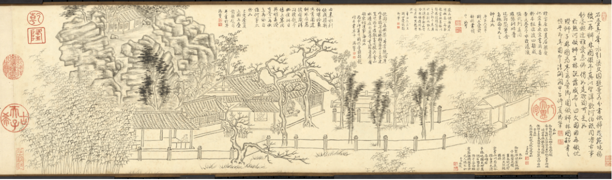 清 弘历 《仿倪瓒〈狮子林图〉》 卷 纸本水墨 全卷纵28.3 厘米、横392.8 厘米 1772 年 故宫博物院