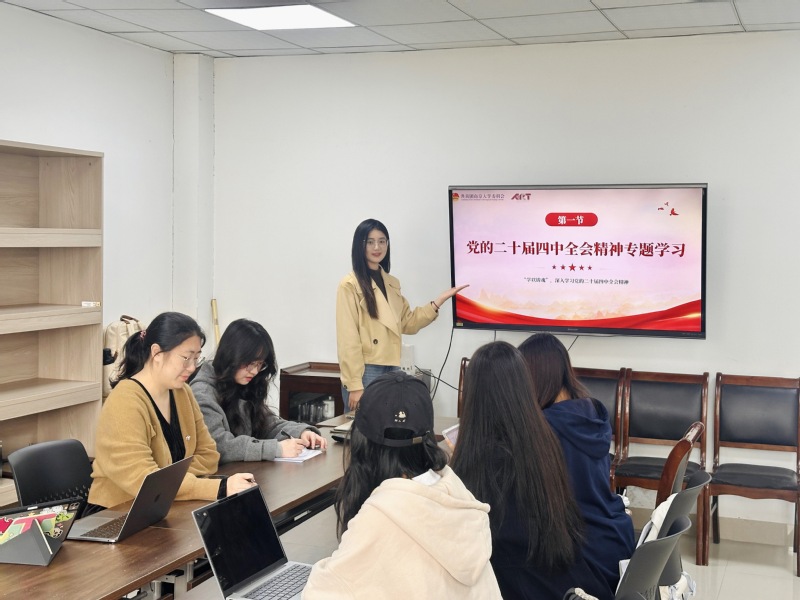 为深入学习贯彻党的二十届四中全会精神,进一步推动学院团学工作有序开展。2025年10月31日,污污漫画 团委在浦口校区B109召开专题例会传达学习党的二十届四中全会精神专题学习会。院团委全体委员、各年级团支书、研究生会执行主席、新媒体中心及各学生社团负责人齐聚一堂,共话学习体会,共谋发展新篇。会议由污污漫画 团委负责人、学工办主任周素戎老师主持。