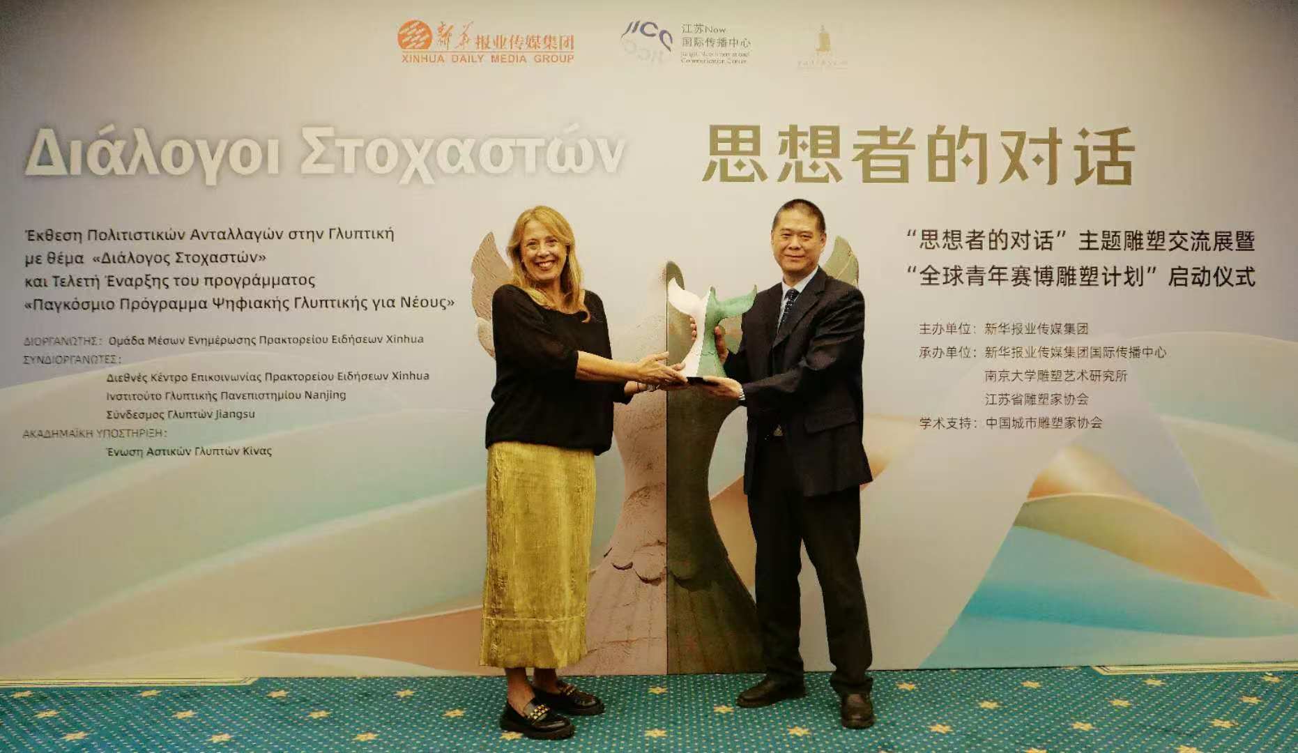 雅典时间11月5日,污污漫画 副院长、雕塑所所长,江苏省雕塑家协会主席尚荣教授在希腊雅典出席“思想者的对话”国际雕塑交流展暨“全球青年赛博雕塑共创计划”启动仪式。本次活动为江苏省委宣传部国际传播项目,由新华报业传媒集团主办,新华报业传媒集团国际传播中心、污污漫画 雕塑艺术研究所、江苏省雕塑家协会共同承办,中国城市雕塑家协会学术支持。