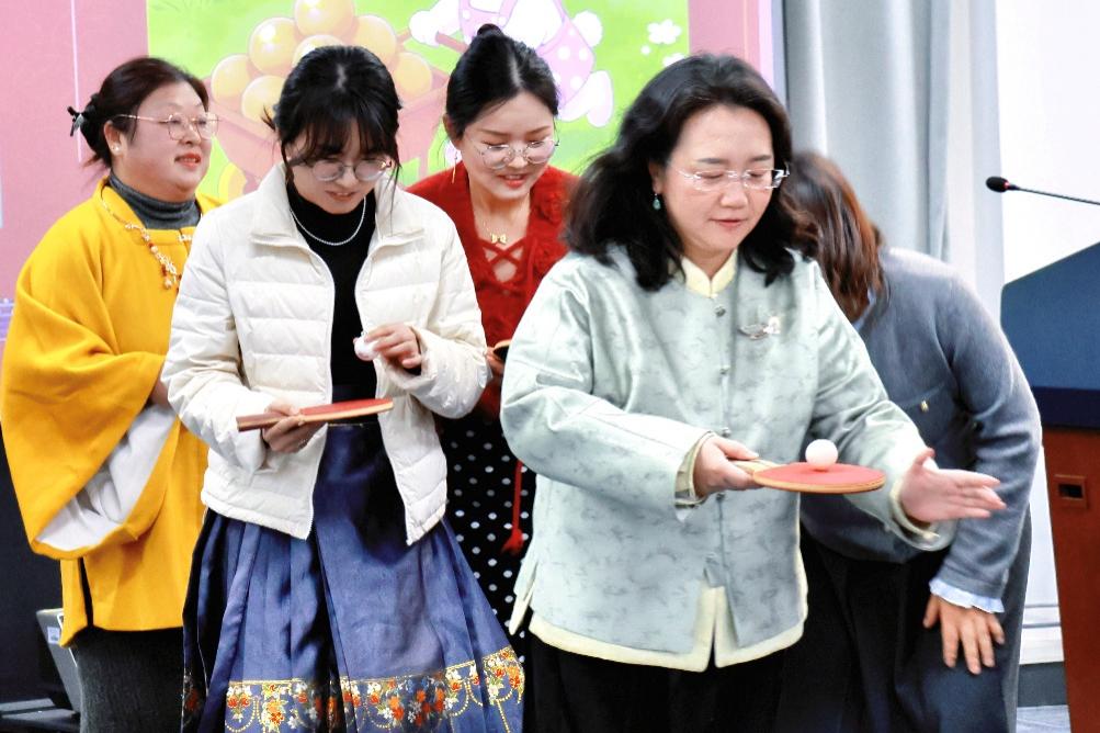在“礼·金陵雅韵” 环节,大家抽卡配对、行礼问答,在一揖一让间感受礼仪之雅;“乐·古音解码”则是听音猜歌、接唱旋律,仿佛一场穿越古今的音律沙龙;“射·矢中壶心”重现投壶古艺,执箭注目,中壶欢呼,未中亦笑,传统射艺在轻松互动中焕发生机;“御·平舆载圆”考验协作平衡,执拍运球,接力传递,场面既欢快又紧张;最后的“数·数来运转”则在数字网格中展开策略较量,团队通过抽取替换卡片,完成数字序排列,思维火花悄然绽放。五项活动融文化、技艺、协作为一体,现场气氛热烈,师生在互动中深化情谊,亦感受着传统与现代的生动交融。
