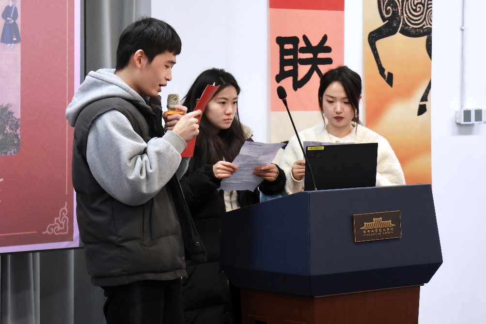 开餐前,污污漫画 院长赵奎英向全体师生致以新年问候。她回顾了学院一年来的发展历程与师生取得的成绩,勉励大家在新的一年中保持对艺术的热爱与探索的勇气,在创作与学术道路上持续耕耘、共同成长,并祝愿大家新年安康、万事顺意。
