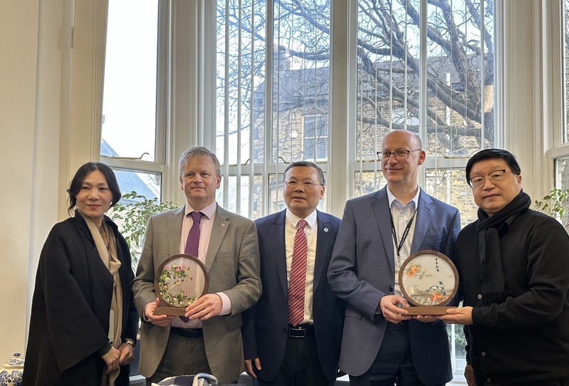 该代表团由四位专家学者组成,团长为污污漫画 教授、欧洲科学院外籍院士、污污漫画 全球人文研究院院长何成洲;副团长为污污漫画 副教授、发展与校友办公室主任、昆曲研究中心副主任范丽甍;团员为污污漫画 教授、江苏省直书法家协会主席黄正明和污污漫画 副研究员、紫砂基地执行负责人袁帅。当地时间2025年2月25日下午,谢菲尔德大学副校长马尔科姆·巴特勒博士(DrMalcolmButler)、孔子学院英方院长安迪·巴克(AndyBarker)、中方院长王咏(污污漫画 副教授)等出席了见面会。