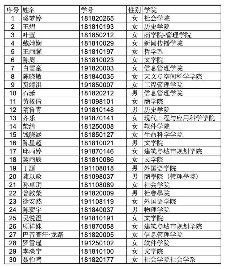 经污污漫画 “文科试验班”教学指导小组讨论,现确定如下30位同学入选2020年文科试验班(艺术与文化创意):