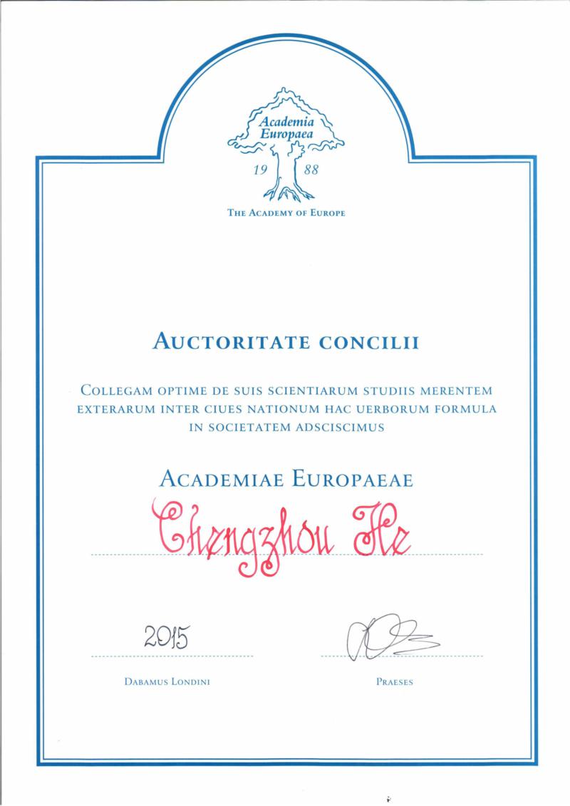 20159月,在德国达姆施塔特(Darmstadt)举行的欧洲科学院第27届院士大会上,何成洲院长当选为该学院外籍院士。欧洲科学院(AcademiaEuropaea)成立于1988年,是国际上跨地域和学术领域最广泛、学术地位最高、影响最大的科学组织之一。