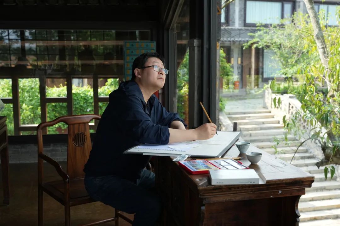 冯玺:贵州右二村独特的山川地貌、建筑样式、自然田野为我们的美术写生提供了丰富的素材,成为了一个开放的美育课堂,让我们在实地写生中学习到更多关于色彩、构图等知识,让我们在这样的环境中感受到自然与人文的和谐共存,在这样独特的环境中,我们被深深触动,通过画笔将其转化为艺术作品,艺术赋能乡村以为己任,创作出具有乡村建设新貌和时代风貌的美术作品。