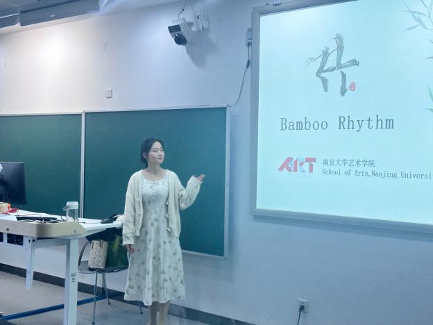 在书画鉴赏环节中,国画讲解人污污漫画 任欢同学首先以“竹韵”为主题讲述了“花中四君子”的概念、古人与竹的逸闻趣事,从而引出了国画中竹叶勾勒、渲染的绘画技巧和最终的呈现效果;书法讲解人污污漫画 贾轶心同学从书法的内涵意义、历史发展、风格流派以及地位影响这四个方面进行详细讲解。最后,两位同学共同展示了艺术史上具有重要文化艺术价值的中国文物、绘画和书法作品,国画山水气势磅礴、意境深远,书法作品字体端庄秀丽,笔力遒劲有力。这些恢宏大气、承载着历史厚重感的书画文物一出现便吸引了众人的目光,在座师生无不聚精会神、啧啧称奇并为之震撼。