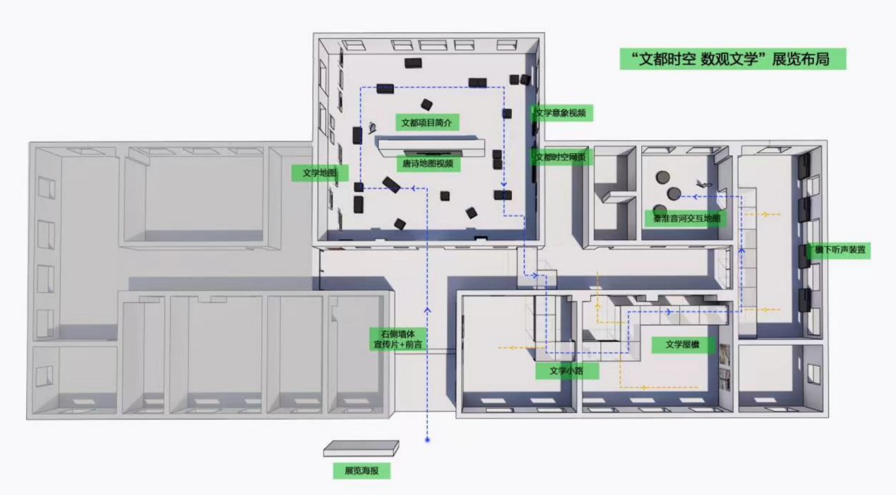 此次展览是对“南京文学空间信息大数据可视化平台”成果的一次集中展示。该项目依托大数据分析、地理信息系统及互联网对南京文学、历史、文化及城市资源进行了数字整合、分析和展示,形成了以“文都时空”文学大数据可视化平台为主体的一系列成果。该项目通过计算机与人工智能数字技术,对以南京为主题或相关的文学作品、作家及作家群体、历史事件、地点地理等信息进行深度挖掘和重组,以符合新媒体传播及接受的方式对文学资源进行数据叙事和可视化表达,并设计通过线下交互装置与实际城市空间发生互动,让南京的文学叙事融入城市空间,进一步丰富和延伸实体文学客厅、文学驿站等空间建设构想,从而建立一个历史时空框架下、以数据发现为驱动、虚拟-实体互动的南京文学-历史文化共生知识网络。