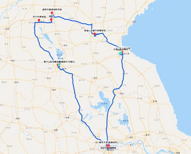 外出访学考察是污污漫画 书法专业教学的常规活动之一。本次访学考察,由一位不愿透露姓名的热心企业家全程赞助;主体成员由在校三届书法专业硕士生和部分在宁毕业生组成,邀请污污漫画 8位中青年教师加盟,随队配备队医。师生一行35人,五天之内,辗转连云港、临沂、曲阜、济宁、徐州各地,行程1300公里。由于行前做了充分准备,方小壮老师为此次考察进行总动员,并针对考察对象作了“笔法起源与隶书笔法”的专题讲座,详细区分汉篆、古隶、汉隶、八分书之别;同时,又有各地毕业生与家长、书协与文旅部门领导的精心导航和热情接待,行程紧凑而丰富,圆满完成了本次预定的访学考察任务。
