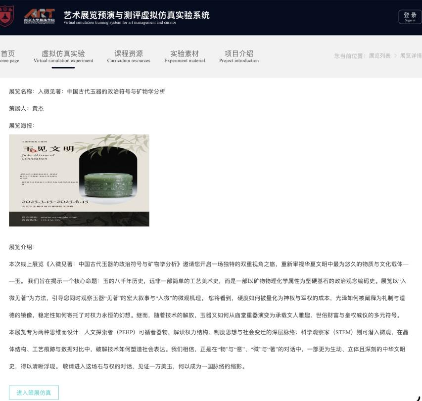 此次实践吸引了来自包括大气科学、临床医学、电子科学与工程、计算机科学与技术、软件工程在内的17个专业的37位同学参与。展览主题涵盖青铜器、玉器、漆器等,反映了不同历史时期和文化背景下的艺术成就。展览强调中国传统艺术的传承与创新,展示了中国与其他文化之间的互动,体现了古代文明的开放性与包容性。通过“穿越时空的’神奇动物’”和“江南图景”等主题展览,同学们引领观众深入探索古代文化的奇妙世界,利用虚拟仿真平台结合图片、文字和视频,为观众提供沉浸式体验,增强了文物与观众的互动。