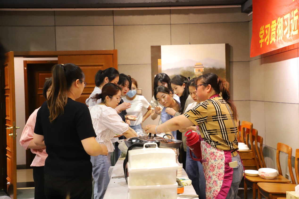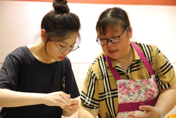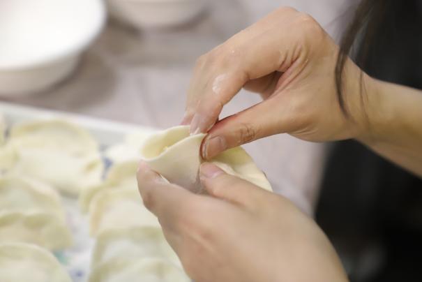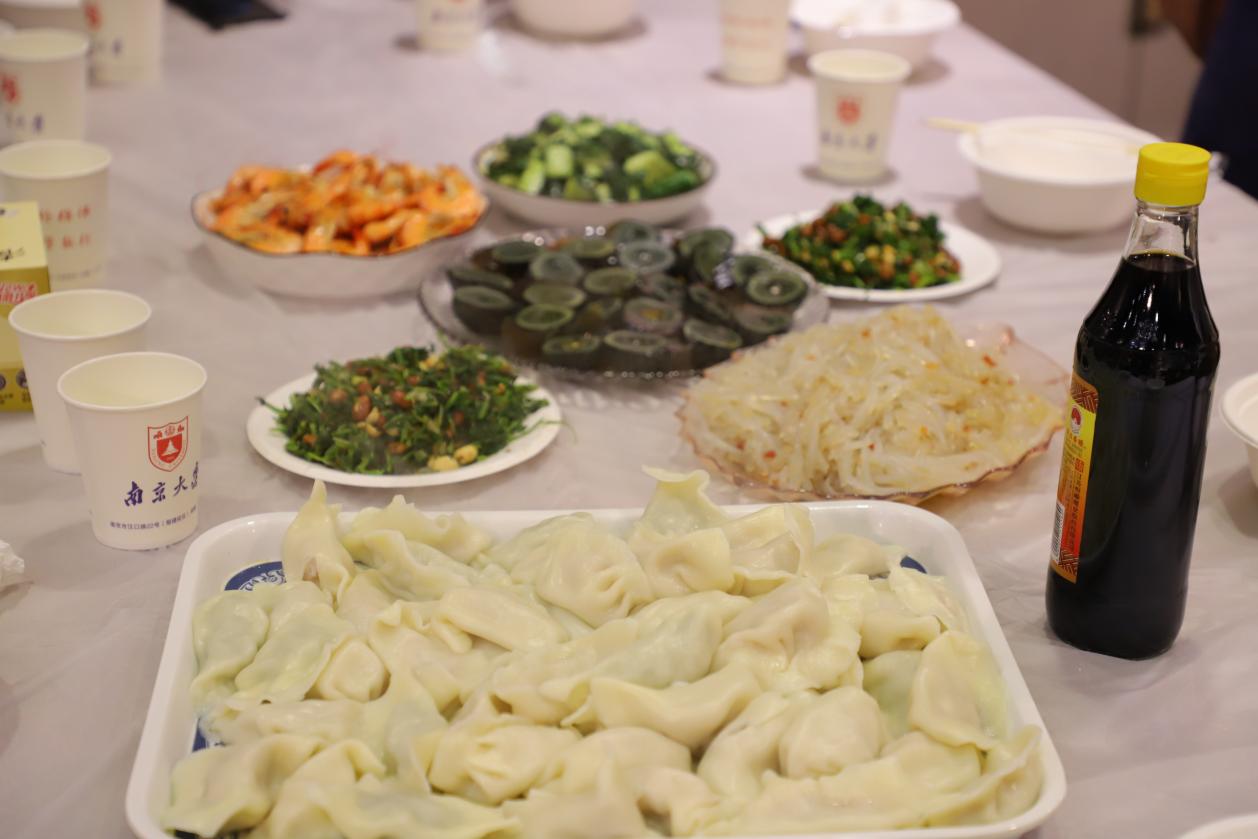 中午11:30,“南说再见”饺子宴在逸夫馆8楼报告厅温馨开席。在包饺子环节,教师和同学们欢聚一堂、各显神通,技艺娴熟者大显身手、厨艺小白们潜心学习,包饺子现场热闹非凡。