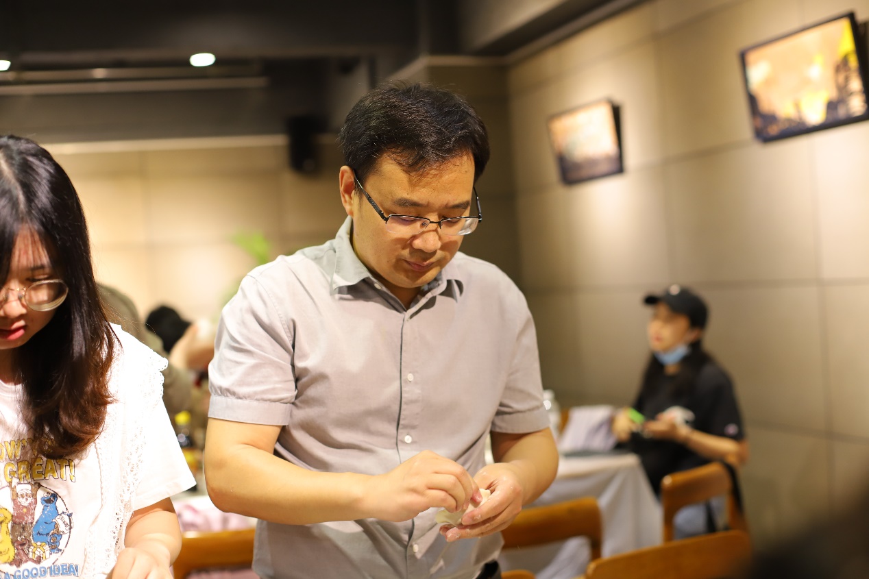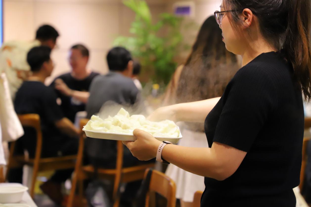 热腾腾的饺子出锅后,师生在以饺子宴为主题的饭桌上畅所欲言,笑语盈盈,其乐融融。逸夫馆八楼弥漫着饺子的香气和欢声笑语,让人感受到了浓浓的快乐氛围。