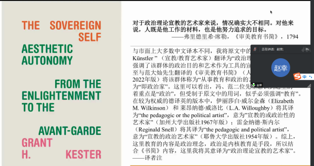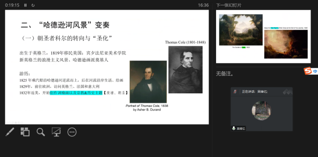 在跨文化视野下的艺术学分论坛中,孙琳老师通过禅宗在当代艺术中的实践与发展的实际个案,讨论了禅宗传统与当代艺术结合中的理论变化;赵幸老师从学术翻译出发讨论美学自主性议题;吴维忆老师通过对美国哈德逊风景画派的研究讨论了跨文化视野下风景研究内涵的变化。