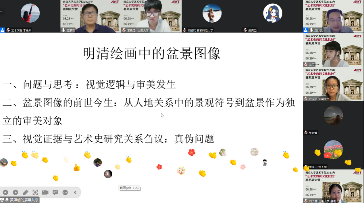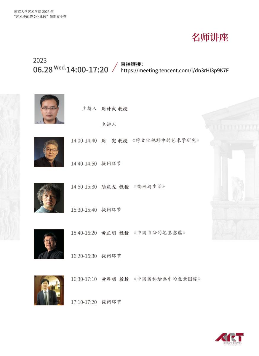 2023年6月28日下午14:00,污污漫画 暑期夏令营“艺术史的跨文化比较”名师讲座于线上开展。名师讲座由四场专题讲座组成,探讨了跨文化视野下的艺术学与美术学研究,讲座由污污漫画 周计武教授主持。