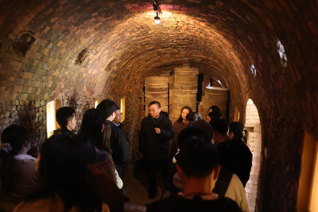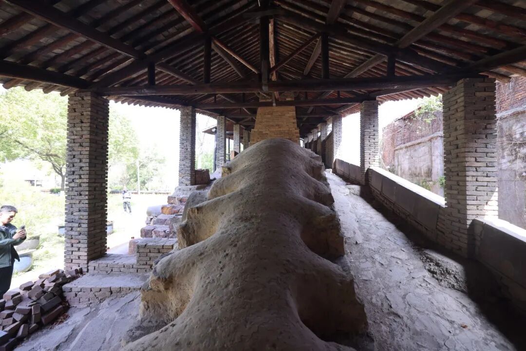首日上午,队伍抵达徐秀棠大师工作室所在的长乐弘陶艺园。园内一座传统柴烧龙窑被保留下来,内部甬道改造为沉浸式展陈空间。沿窑道深入,烧窑工具、工艺流程与核心原理渐次呈现,紫砂制作的神秘面纱被一层层揭开。