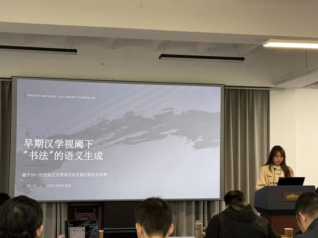 在博士生的与谈环节,王一凡强调,晚清民国书法之变,不只是内部碑帖之争,更是全球文化同频共振的结果。她以西学东渐为关键词,提炼出三条共同推动书法现代转型的核心影响路径:一是西方艺术史特别是形式主义美学,以里格尔、沃尔夫林等为代表,建立形式分析、视觉结构评价体系,让书法从“书写”纳入“视觉艺术”范畴。二是西方汉学的学术转型,特别是沙畹、伯希和、福开森等人将考古、文献、美学等多元方法带入,将中国金石学与西方艺术学相对接,推动书法研究从文人品评走向现代学术。三是西方现代艺术对线条、抽象、表现力的追求与中国书法天然契合,这种审视角度也推动书法成为全球艺术话语中的独立门类。同时,西方博物馆、展览、出版体系与传入中国珂罗版、摄影技术同步成熟,共同推动书法从文人私藏走向公共艺术。