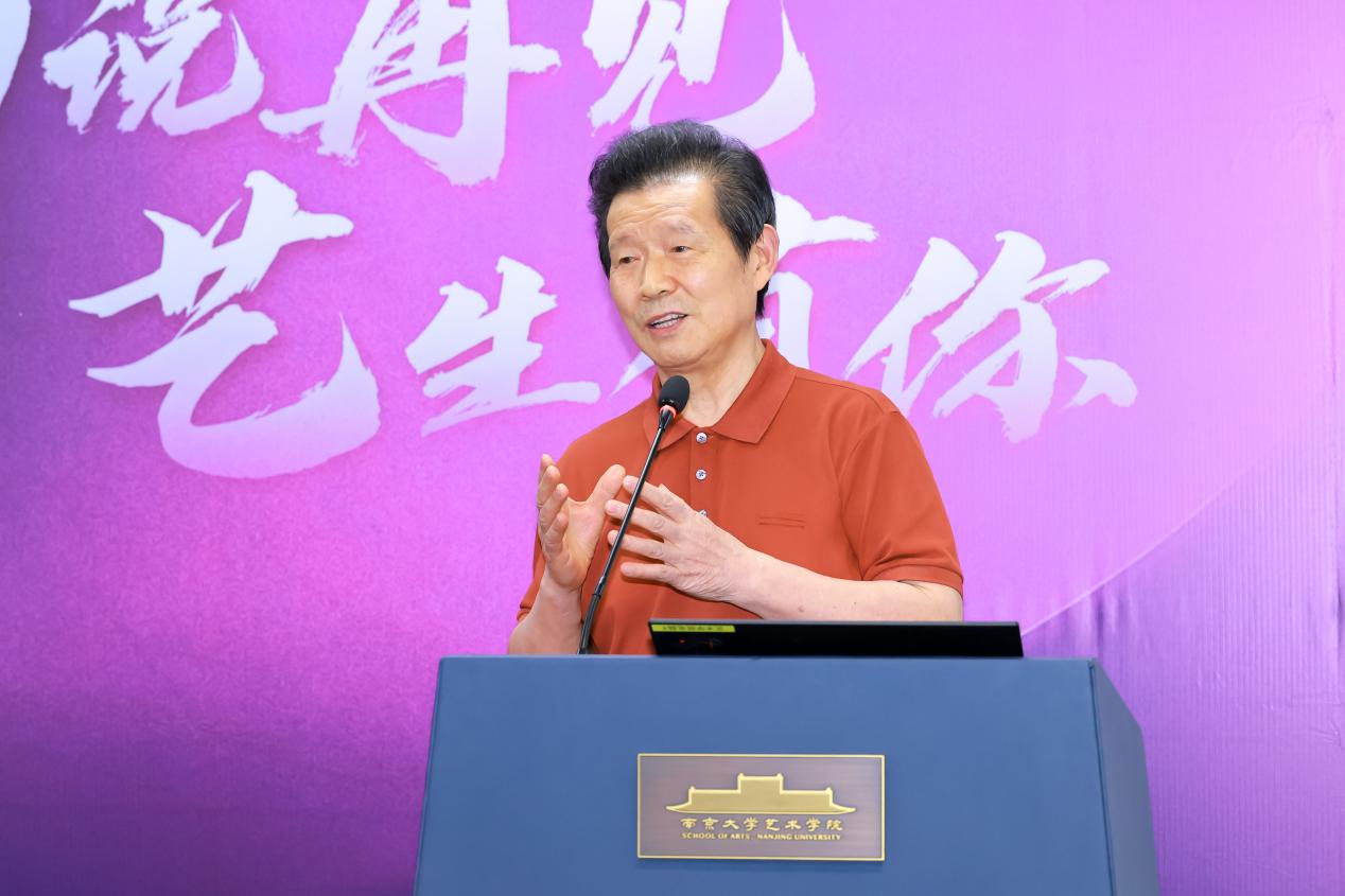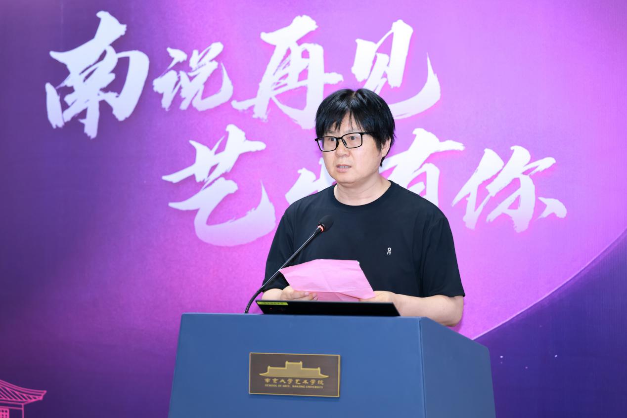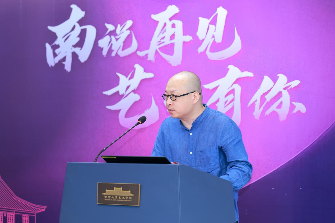 硕士研究生行业导师、江苏省政府参事、江苏省书法家协会副主席刘灿铭先生,以及江苏省文化馆党总支书记、馆长赵彦国先生作为嘉宾代表发表致辞,向毕业生致以热烈祝贺和美好祝愿。言恭达先生勉励毕业生,要铸造成长力,开拓创造力,并坚定文化自信。刘灿铭先生结合自身跨界经历,倡导毕业生尝试跨界融合,坚持终身学习,注重德艺双修等等。赵彦国先生分享了与南大污污漫画