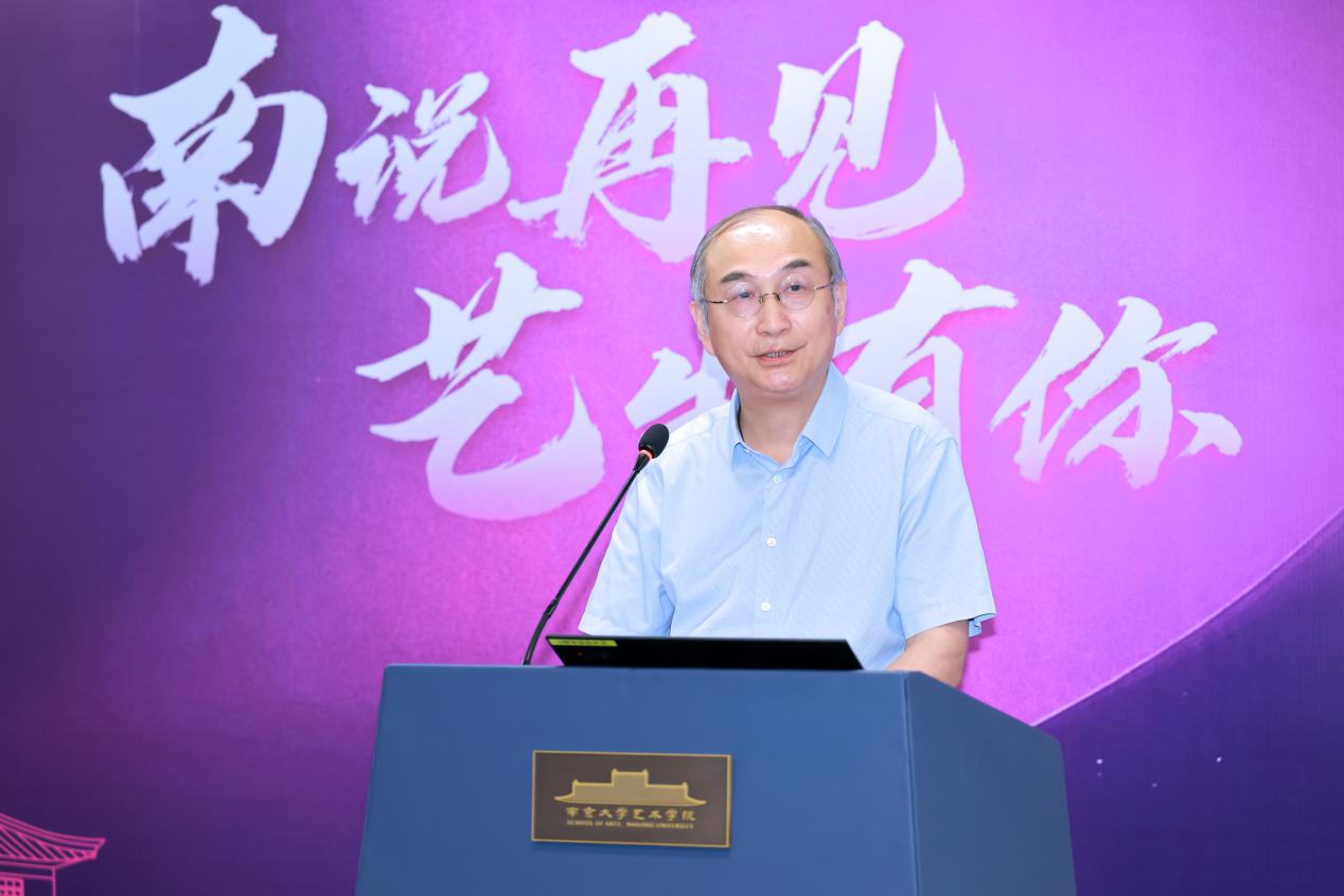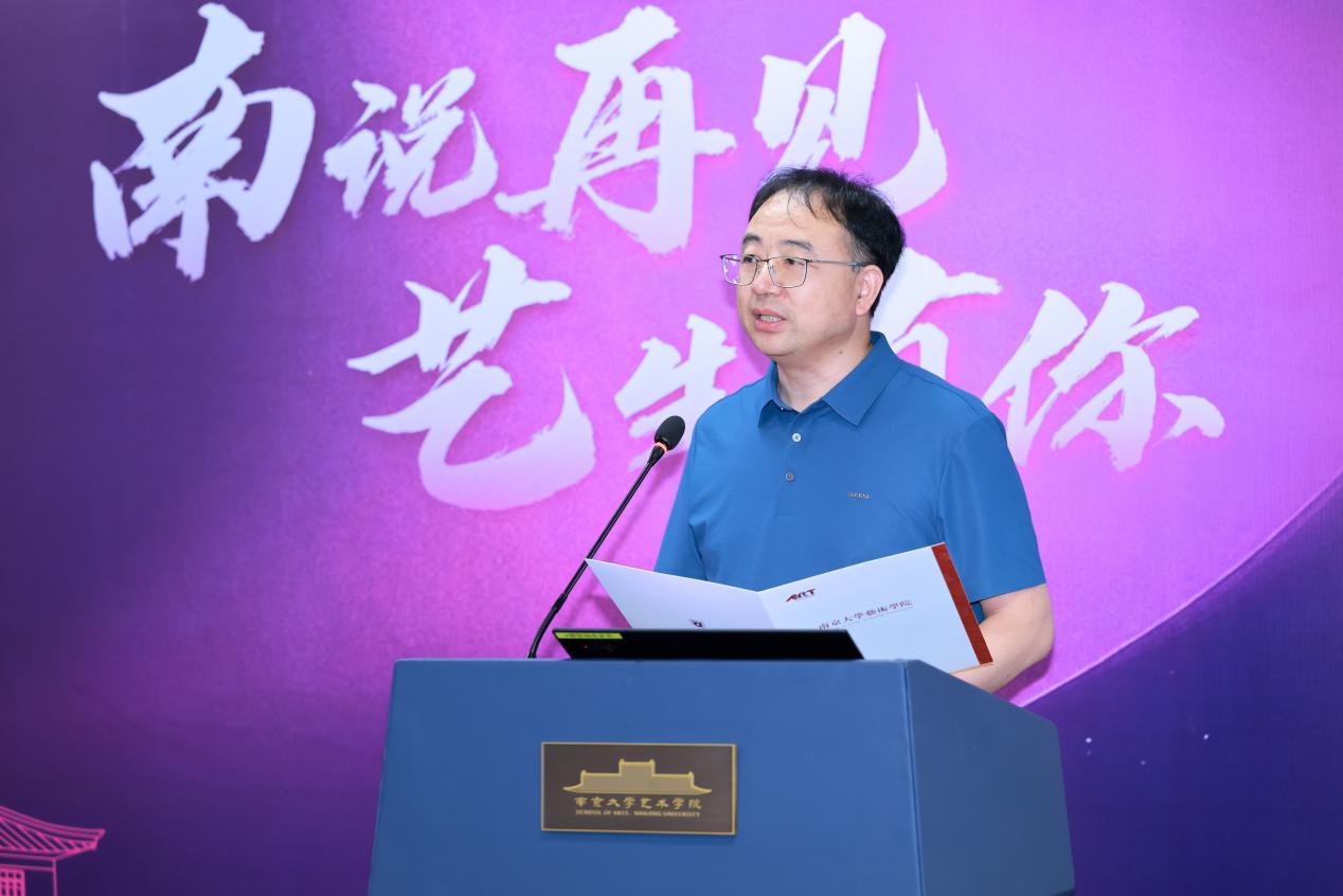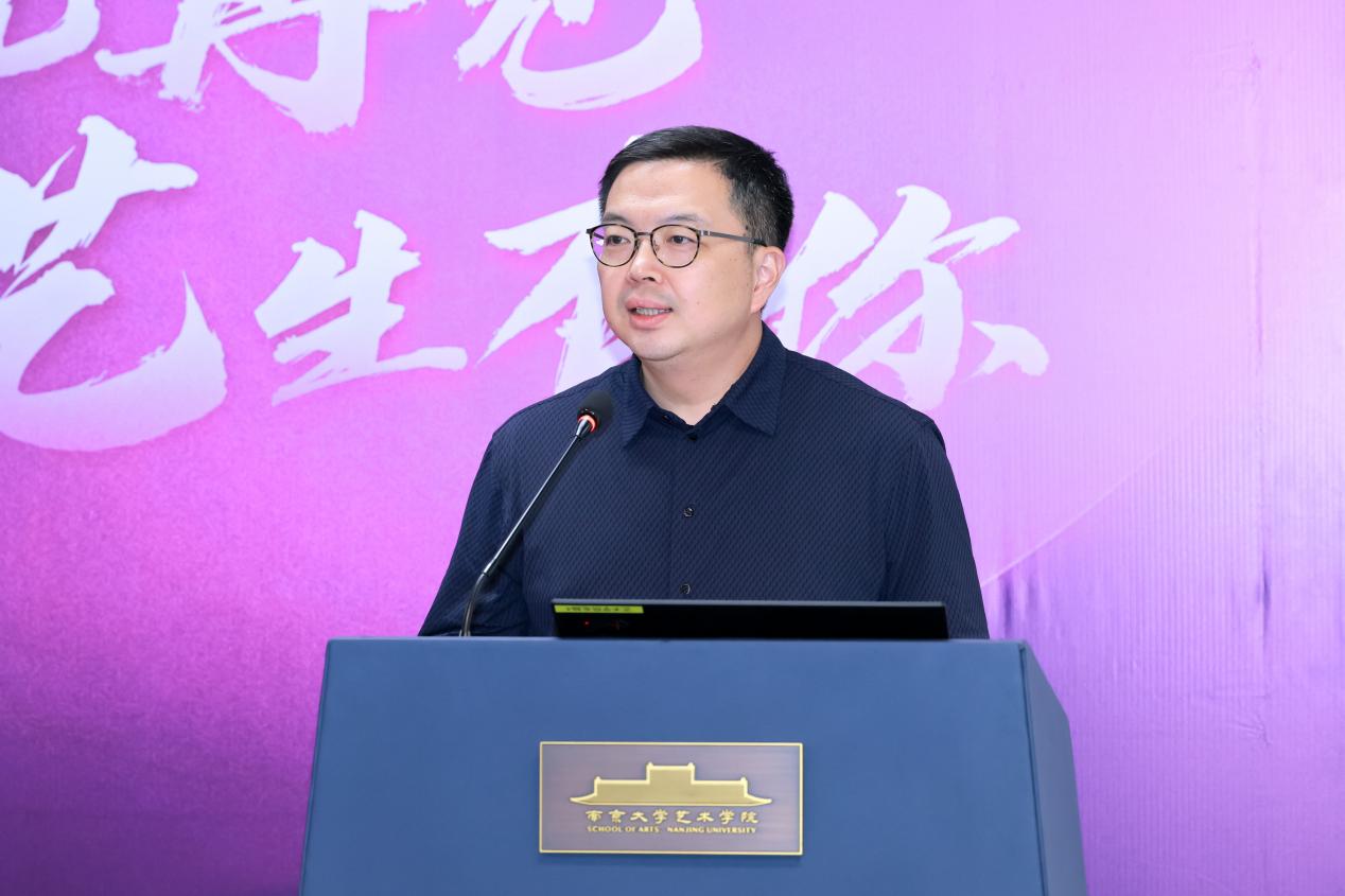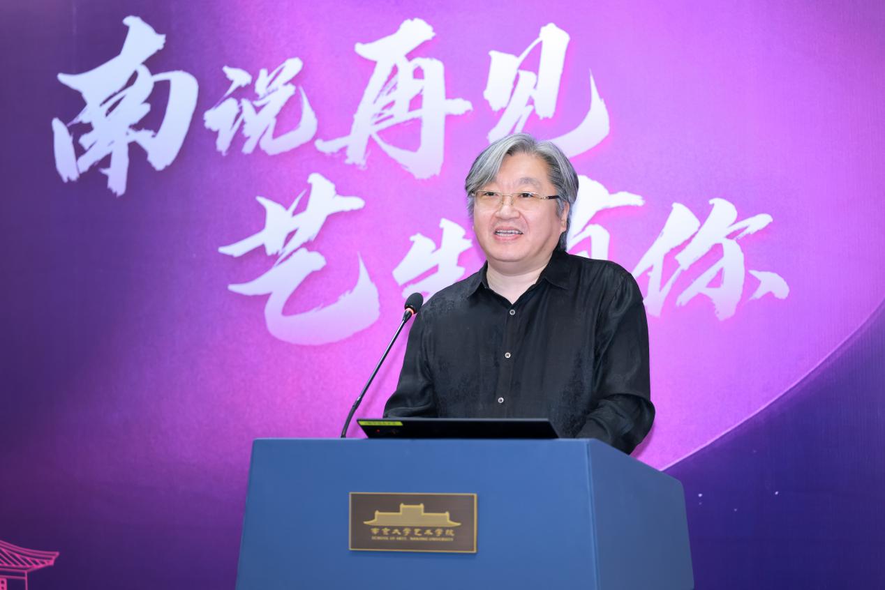 硕士研究生行业导师、江苏省政府参事、江苏省书法家协会副主席刘灿铭先生,以及江苏省文化馆党总支书记、馆长赵彦国先生作为嘉宾代表发表致辞,向毕业生致以热烈祝贺和美好祝愿。言恭达先生勉励毕业生,要铸造成长力,开拓创造力,并坚定文化自信。刘灿铭先生结合自身跨界经历,倡导毕业生尝试跨界融合,坚持终身学习,注重德艺双修等等。赵彦国先生分享了与南大污污漫画