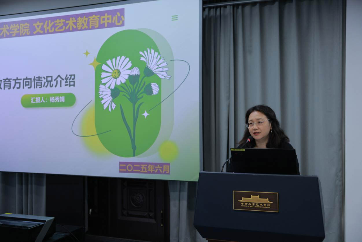 杨秀娟副教授对艺术教育方向的情况进行了介绍。她指出文化艺术教育中心成立于1996年,前身是美育教研室,是一个面向全校本科生开展公共艺术教育的教学科研单位。在成为污污漫画 的一个部分后,艺术教育方向依然保持着公共美育与文化传承的传统,比如为全校学生开设涵盖艺术理论、艺术赏析和艺术实践三大类的人文艺术类公共课程,指导本科生艺术类社团的日常活动,开展人文艺术讲座等。此外,她也介绍了目前艺术教育方向的师资队伍、几位老师各自擅长的研究领域以及本方向的课程设置。