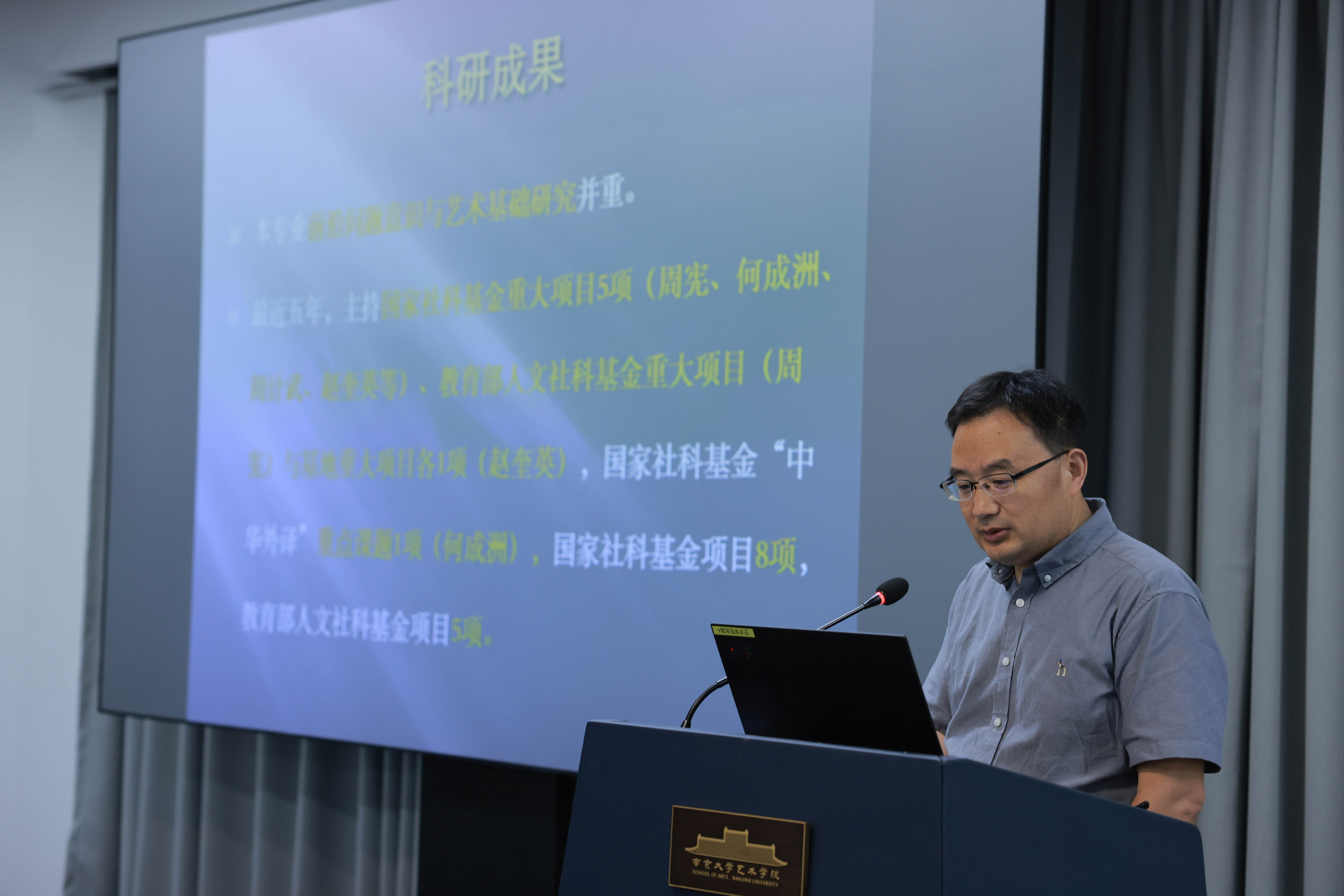 周计武教授对艺术理论与美学、艺术史与艺术批评方向的情况作了介绍。他指明艺术史论是艺术学学科最基础的两个专业方向,也是南大污污漫画 艺术学极其重要的理论阵地。艺术史论方向的特点是前沿问题意识与艺术基础研究并重,强调国际化、跨学科,且相当重视文献。基础问题的研究、国际化的视野离不开扎实的文献基础,这也是艺术史论方向团队先后参与编写多套西方艺术史论译丛和读本的原因之一。