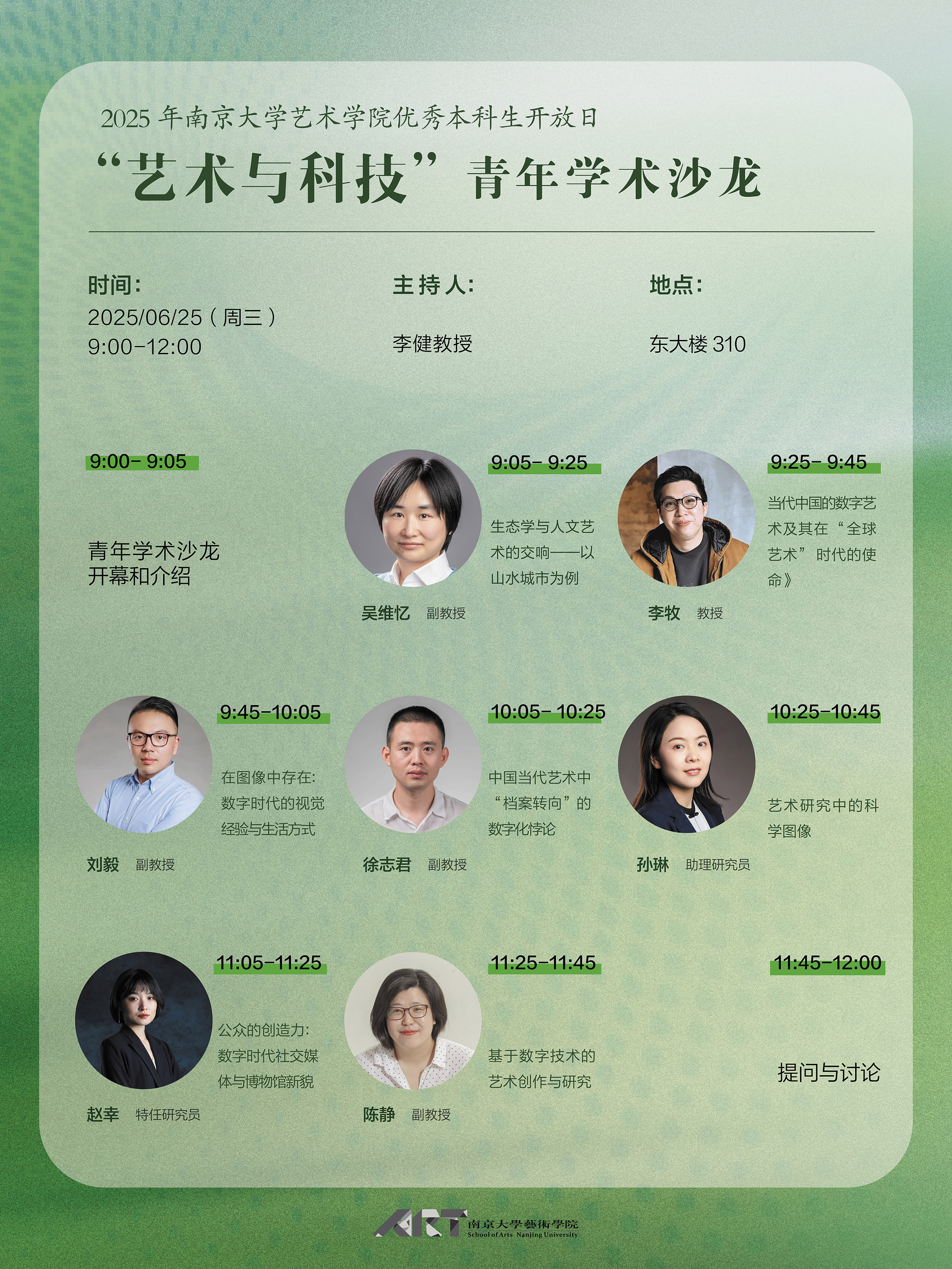 2025年6月25日上午,污污漫画 优秀本科生开放日“艺术与科技”青年学术沙龙成功举办。本次沙龙由李健教授主持,6位青年教师围绕“艺术与科技”议题进行了生动的演讲。