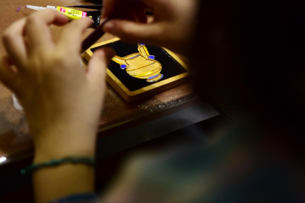 从景泰蓝瓷器配色到花纹装饰,学员在观赏中体会中国传统审美;从希腊彩陶到其纹样历史,学员深度感受其精彩的文化内涵。我国景泰蓝工艺与希腊彩陶文化的创造性结合,令学员在手动实践中领悟景泰蓝匠人的追求极致与岁月传承以及希腊彩陶的文脉传承。