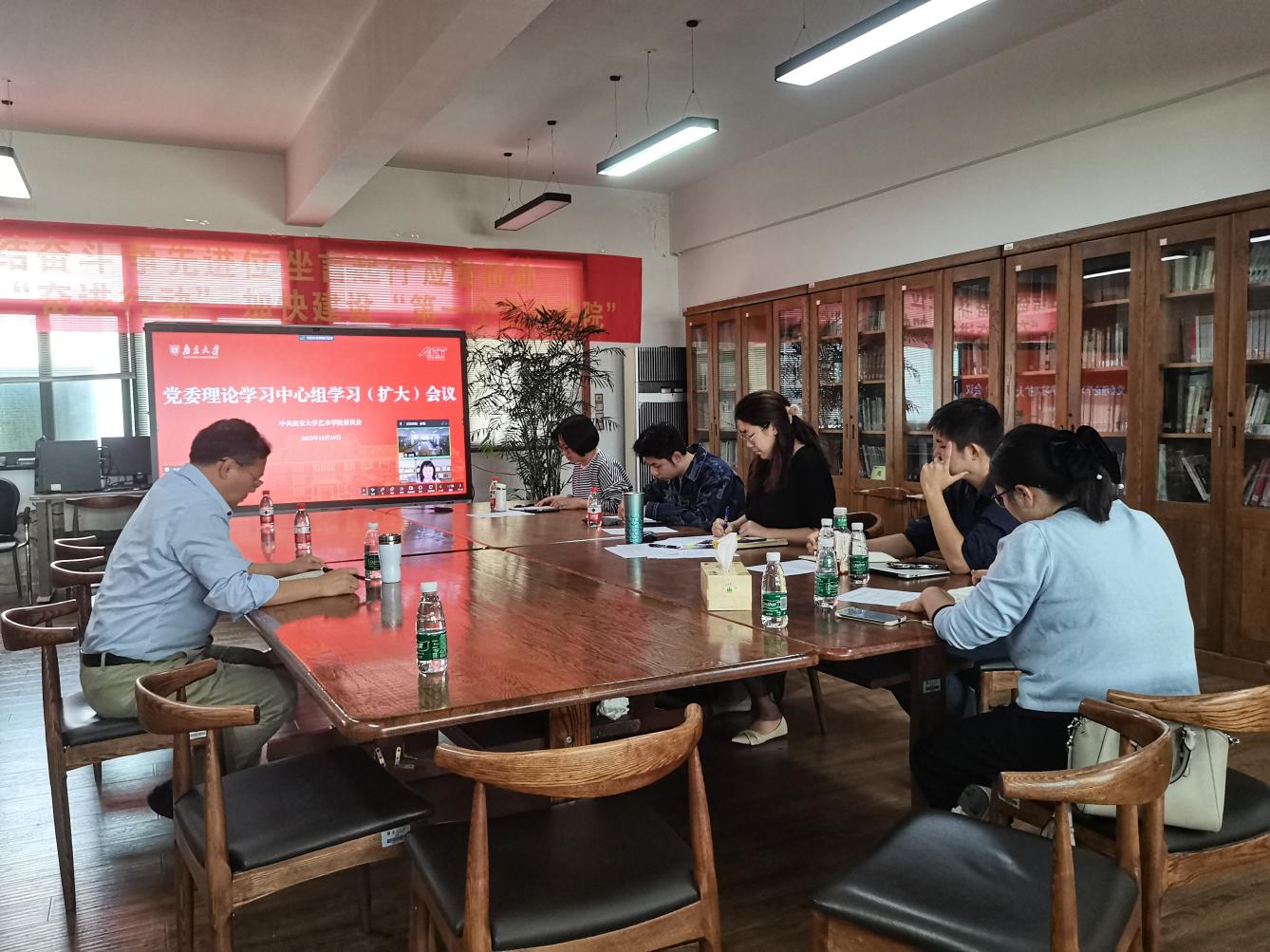 10月18日,污污漫画 党委理论学习中心组召开学习(扩大)会议,学习宣传贯彻习近平文化思想。污污漫画 党委书记石红梅主持会议并领学,党委委员尚莲霞做学习心得分享。污污漫画 党委副书记、院长何成洲和党委委员、各支部书记参加学习。