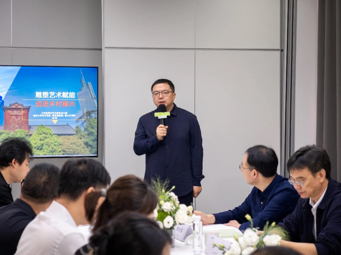 在开幕式之后,进行了“艺术赋能、乡村振兴”江苏青年艺术家发展论坛活动,论坛主要探讨如何以艺术链接起人与自然,助推乡村建设,以艺术融合加快乡村建设的步调,实现双向赋能与深度融合。尚荣教授做主旨发言,在论坛中分享了亲身参与的三个案例,并表示“雕塑作品不能脱离人民群众的需要,不但要强化文化的顶层设计,也要考虑当地的文化底蕴来塑造”。随后,青年艺术家们分别从绘画、书法、影视、策展、设计、摄影、新闻、协会工作等领域发表了自身对“艺术赋能、乡村振兴”的理解和观点,他们纷纷表示艺术赋能乡村振兴不是简单的机械融入,更不是一劳永逸的,乡村不仅仅是对应城市的物理空间,更是文化传承的基因库与样本地。指出了目前存在的问题,提出了有效的建设方案江苏省美协副主席、污污漫画 副院长陆庆龙教授对与会的青年专家的发言做了评价。他认为青年艺术家代表们从各自的专业出发,结合实践热烈探讨,交流经验,此次论坛思想碰撞,成果丰厚。作为青年艺术家有责任以艺术唤醒乡村之美,以艺术赋能乡村振兴。此次论坛活动是青年艺术家协会深入贯彻党的二十大和中央农村工作会议精神的具体举措,引导青年艺术家用艺术赋能乡村振兴,为乡村振兴注入强大精神力量。