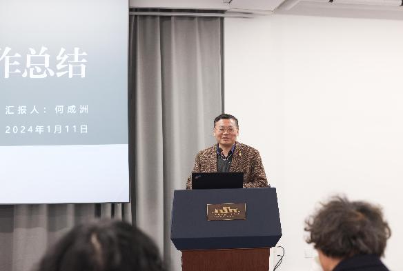 何成洲院长向大会做2023年度行政工作报告。他从学科建设与科研工作、人才队伍建设、人才培养工作、本科教学工作、国际学术交流、校园文化建设、社会服务工作、行政管理工作等方面展开。何院长还从政治学习、院党委工作、行政工作、教学工作、增强咨政能力、廉洁自律方面做个人年度工作述职。